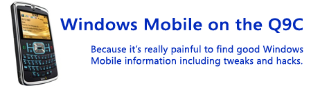 A resource for those with Windows Mobile 6 and the Motorola Q9C because it's hard to find good WinMo information including tweaks and hacks. The info may also be useful to users of other phones and versions of Windows Mobile.